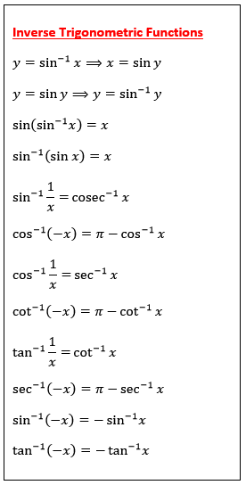 Trigonometry Inverse Formula List - Mathematics